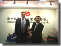 Photograph of Mr. Chen Shenghong with Mr. John Chang, General Manager Asia Pacific Sales, GE Energy Services. |